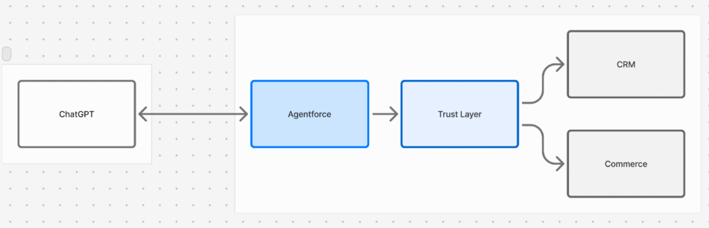 - Speed and reliability – The round-trip between ChatGPT and Salesforce must be seamless for real-time use.
